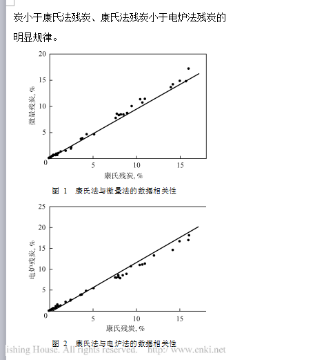 前述的實驗結(jié)果說明 ,用三種不同方法測定不同類型的油樣時 ,所得殘?zhí)繑?shù)據(jù)間的相關(guān)性有好有